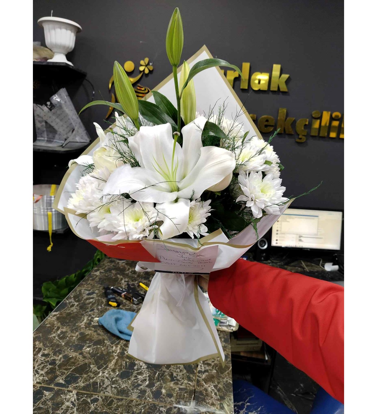 Bu buket, lilyumların doğal ihtişamını ön plana çıkaracak şekilde titizlikle hazırlanmıştır: