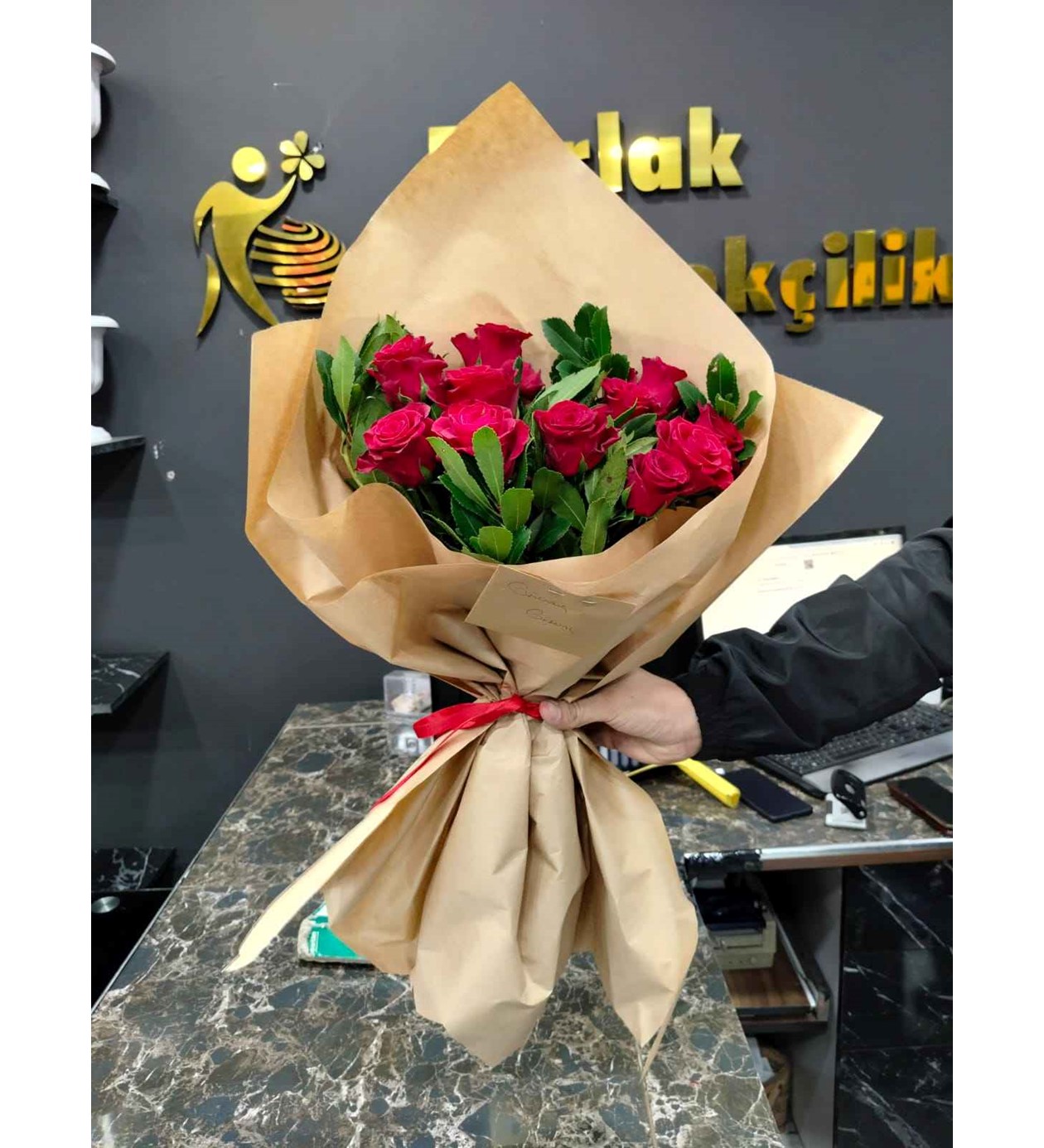 Duygularınızı en asil şekilde ifade edin! 11 adet kırmızı gül, "benim için çok özelsin" mesajını vermenin en şık yoludur. Doğal kraft kağıt ambalajı ve canlı yeşil yapraklarla zenginleştirilen bu tasarım, sadeliği ve zarafeti bir araya getirerek sevdiklerinizi büyülemek için hazırlandı.