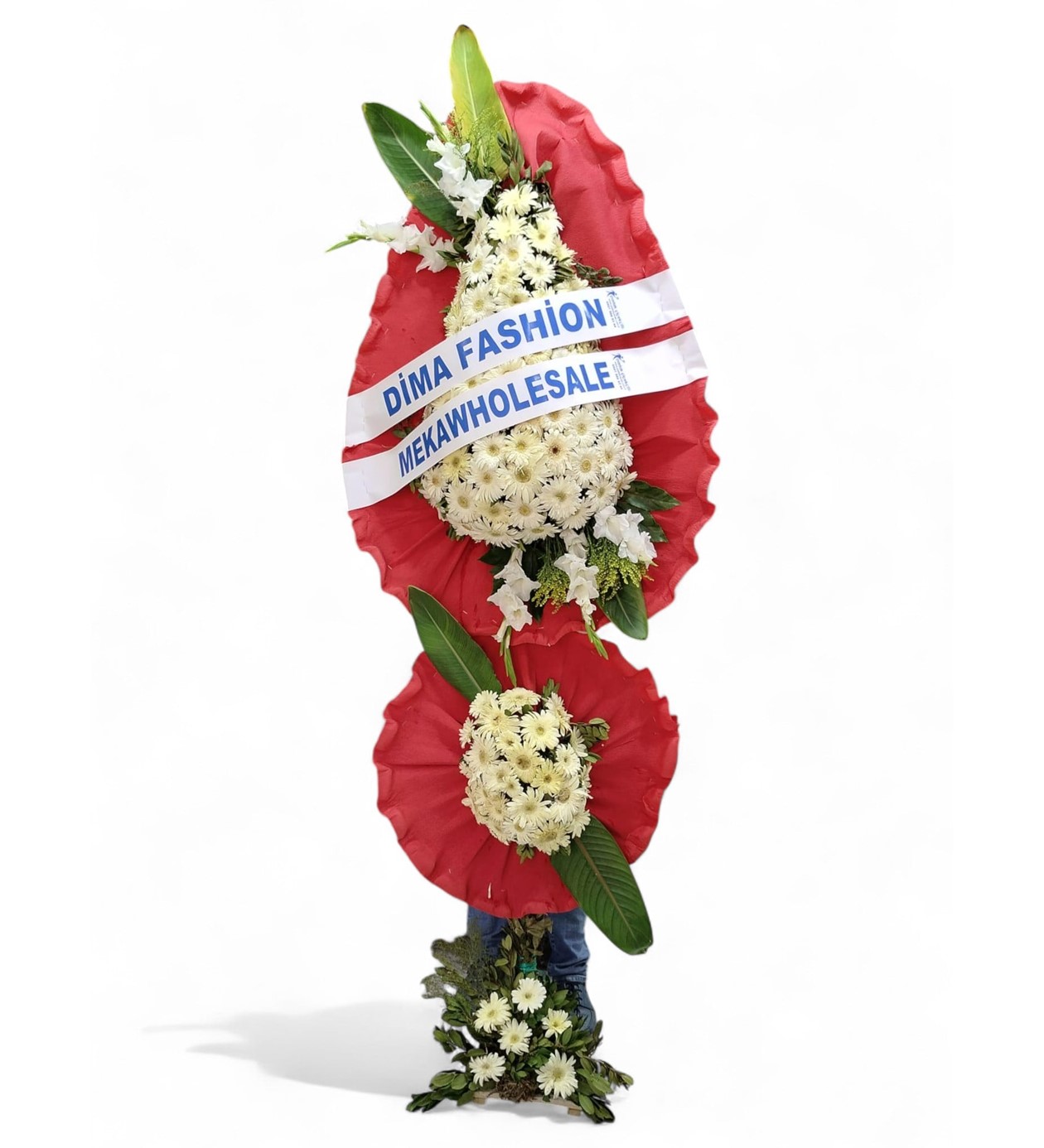 Çift Katmanlı Görünüm: Üstte büyük, dikey ve oval bir aranjman ile altta daha küçük, yuvarlak bir aranjmanın dikey olarak birleştirilmesiyle oluşur. Bu yapı, sıradan tek katlı çelenklere göre çok daha görkemli ve hacimlidir.