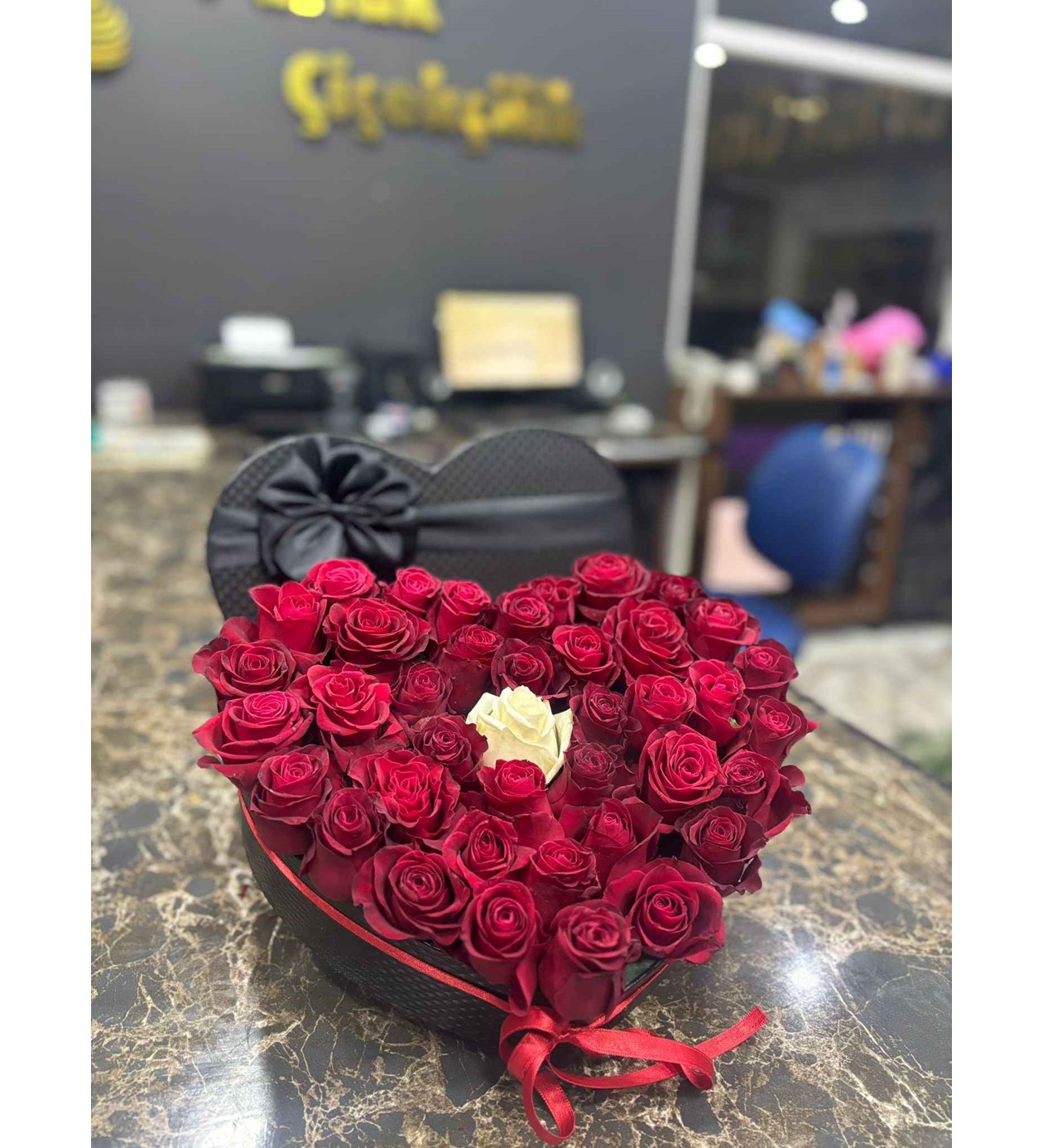 Duygularınızı sıradanlıktan uzak, tamamen size özel bir sunumla ifade edin. Lüks siyah kalp kutu içerisinde hazırlanan bu aranjmanlar, taptaze güllerin kadife dokusunu modern bir estetikle birleştiriyor. İster sevdiğinizin baş harfini güllerle nakşedelim, ister tek bir beyaz gülle saf sevgiyi vurgulayalım; her tasarım bir aşk hikayesi anlatır.