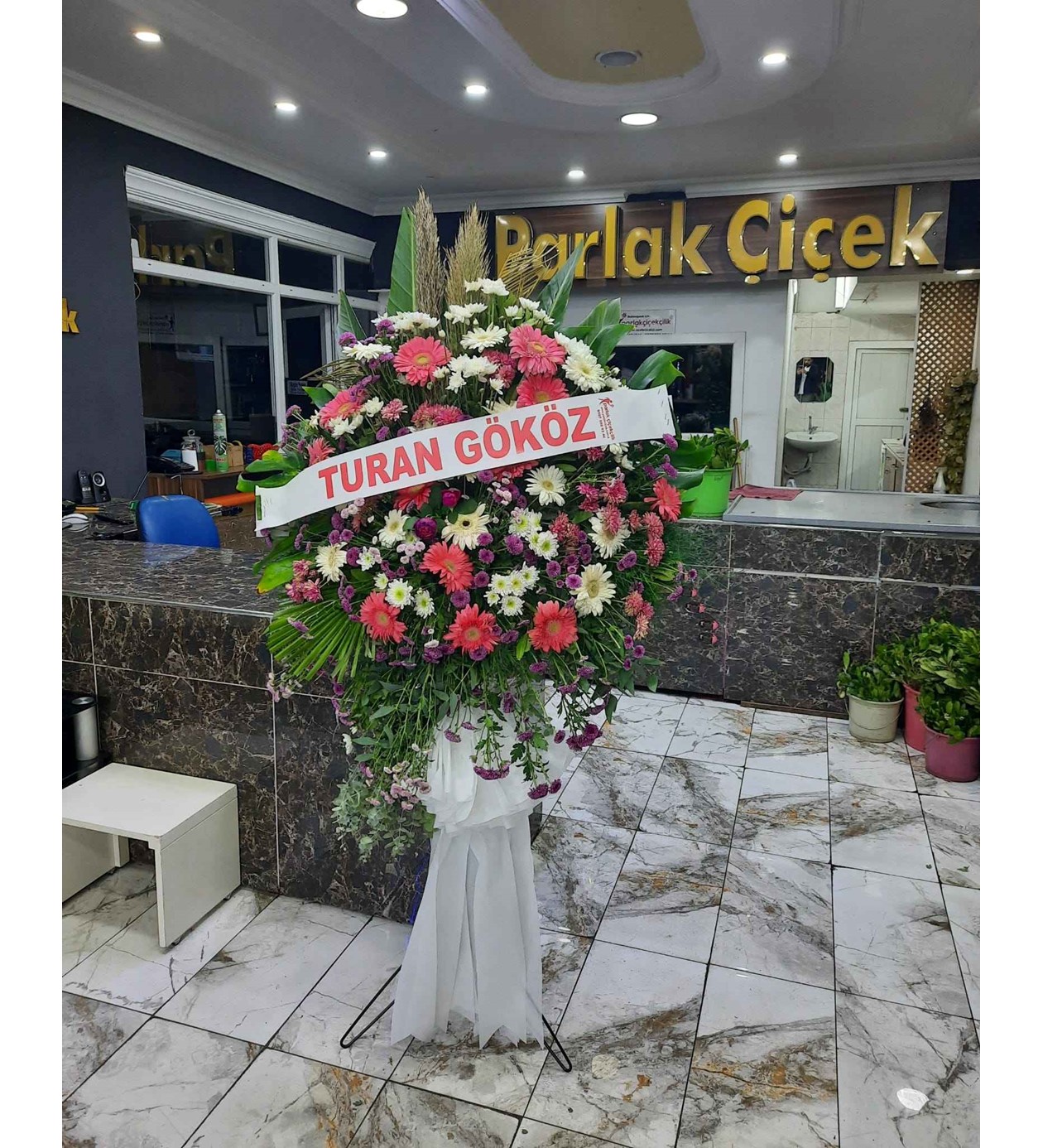 Bu büyük boy aranjman, en taze çiçeklerle ve yüksek estetik anlayışıyla oluşturulmuştur: