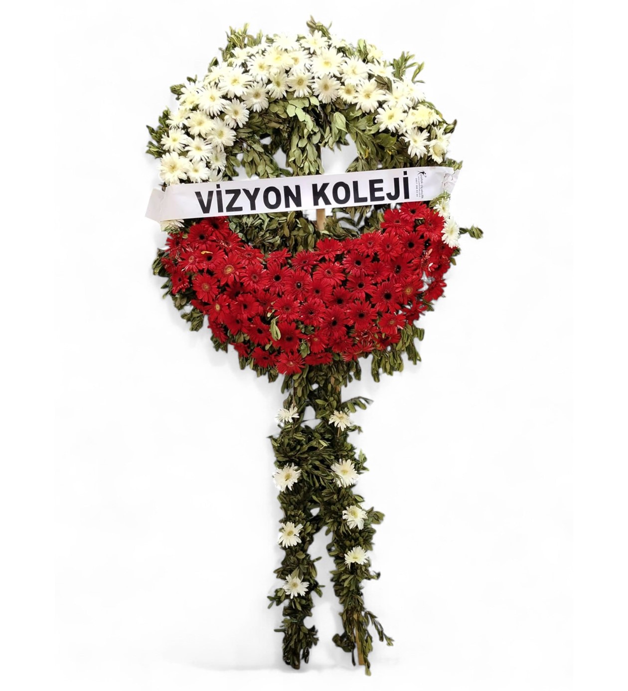 Kırmızı Gerbera/Krizantem: Çelenğin büyük bir bölümünde yoğun olarak kullanılan kırmızı çiçekler, derin üzüntü ve ebedi sevgi duygularını güçlü bir şekilde ifade eder.