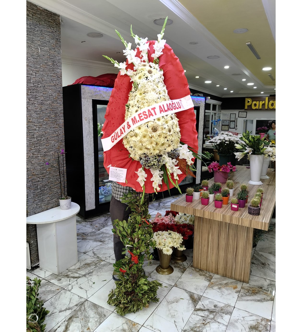 Zarif Çerçeve: Çiçek aranjmanı, etrafını saran beyaz, fırfırlı tül veya kumaş ile desteklenerek lüks ve dolgun bir görünüm kazanır.