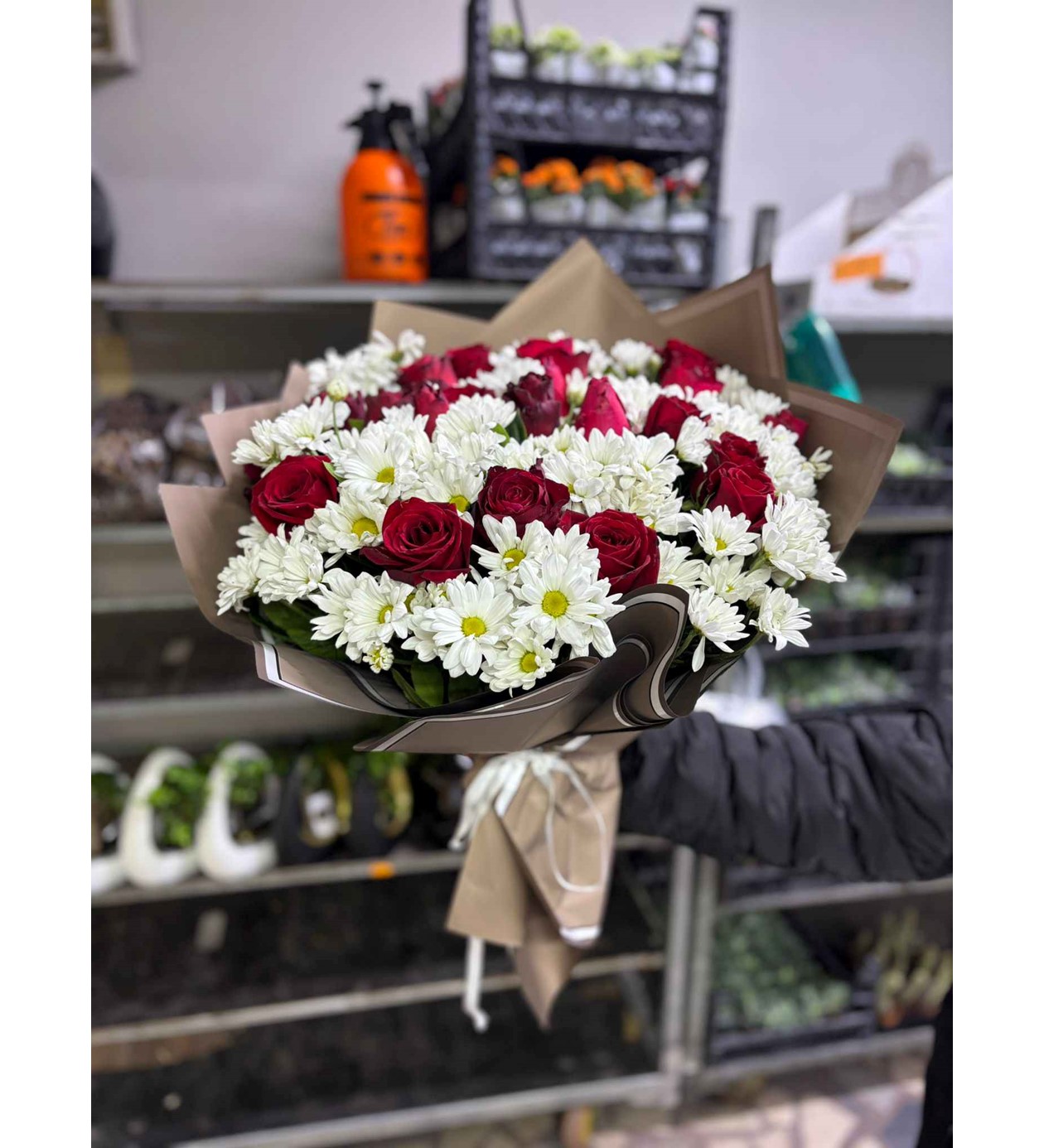 Anlamlı Bir Karşılaşma: Beyaz papatyalar "temiz bir kalbi", kırmızı güller ise "derin bir aşkı" simgeler; bu birleşim her türlü kutlama için kusursuz bir denge sunar.