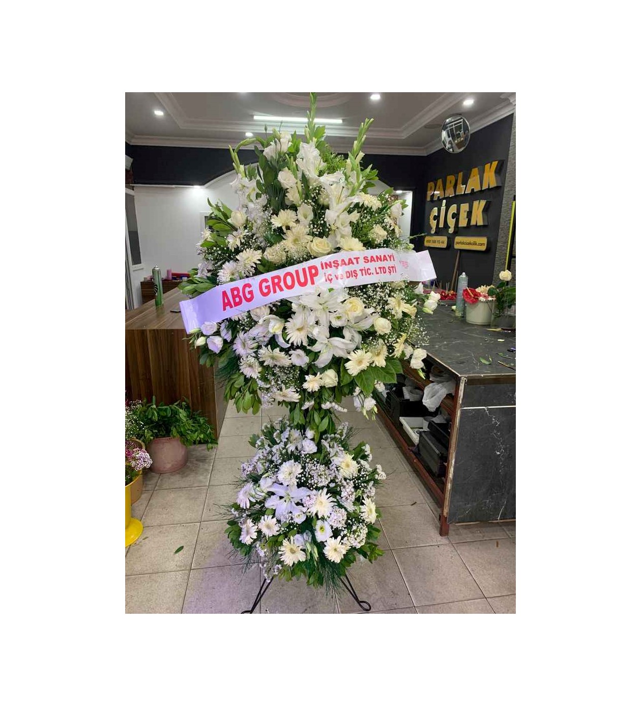 En özel açılışlar, düğünler ve kurumsal törenler için tasarlanan bu premium ferforje aranjmanı, varlığınızı en görkemli şekilde hissettirir. İki katlı yapısı sayesinde maksimum görünürlük sağlayan bu tasarım, beyaz lilyumların (zambak) büyüleyici kokusunu ve beyaz gerberaların masumiyetini bir araya getiriyor.