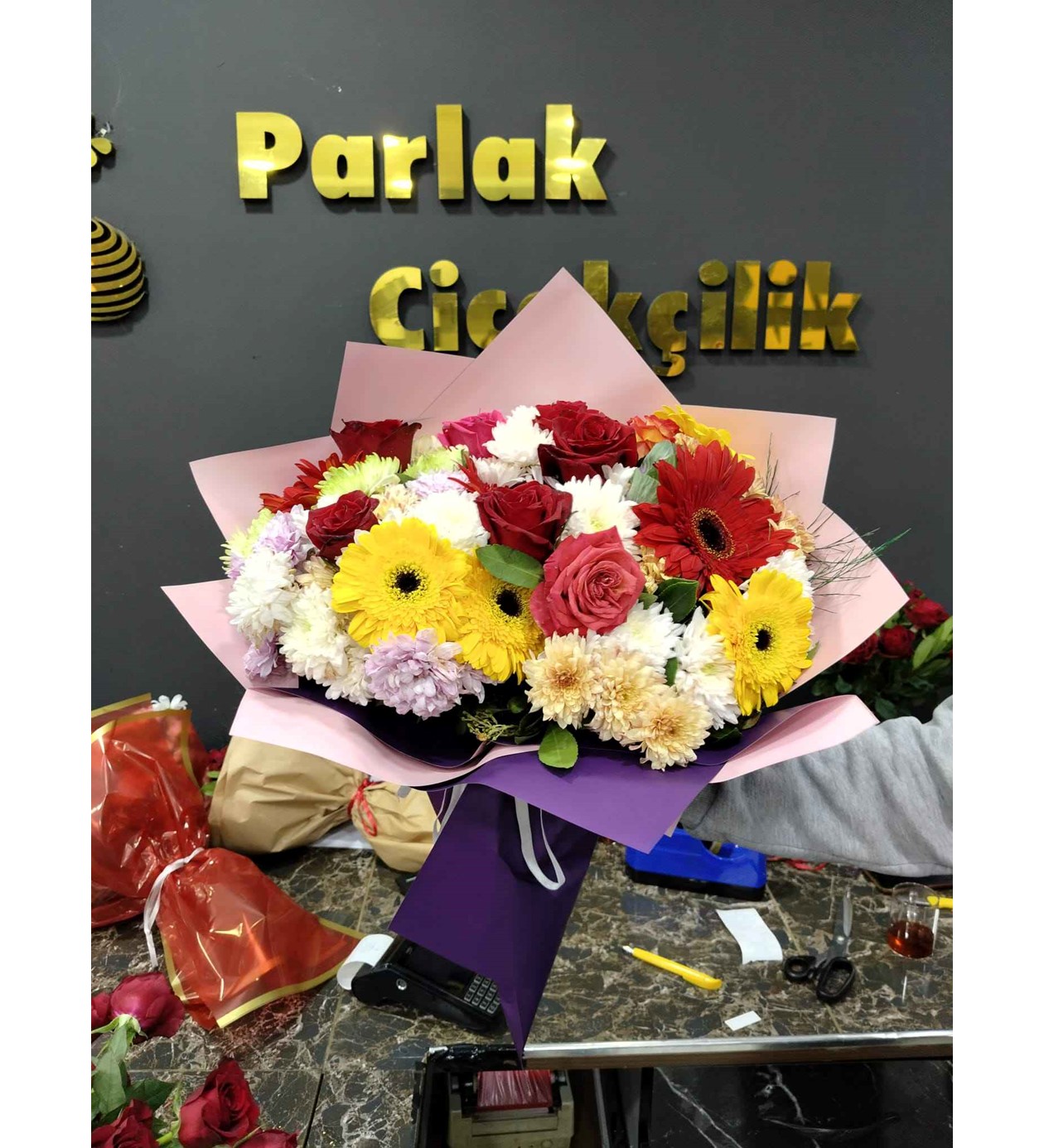 Hacimli ve Gösterişli: Standart buketlerin çok ötesinde, büyük boyutuyla ulaştığı her yerde hayranlık uyandırır.