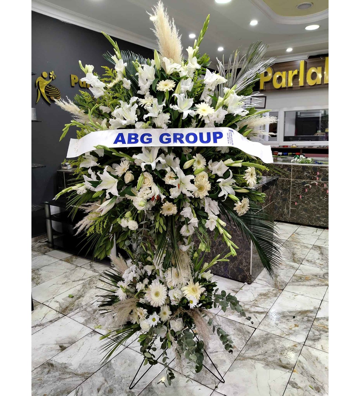 En görkemli kutlamaların başrolü! İki katlı tasarımıyla fark yaratan bu ferforje aranjman, beyaz lilyumların (zambak) büyüleyici kokusunu ve beyaz gerberaların masumiyetini bir araya getiriyor. Uzun boylu yapısı ve zengin çiçek yoğunluğuyla, ulaştığı her mekanda en dikkat çekici tebrik mesajı sizin olacak.
