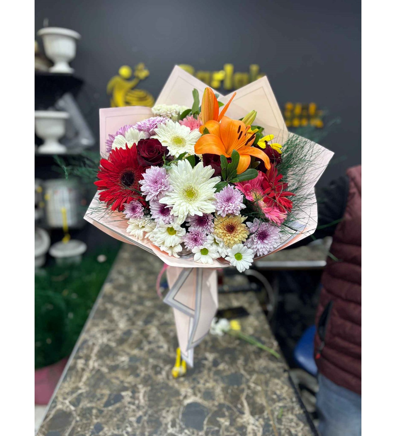Bu zengin buketi oluşturan her bir çiçek özenle seçilmiştir: