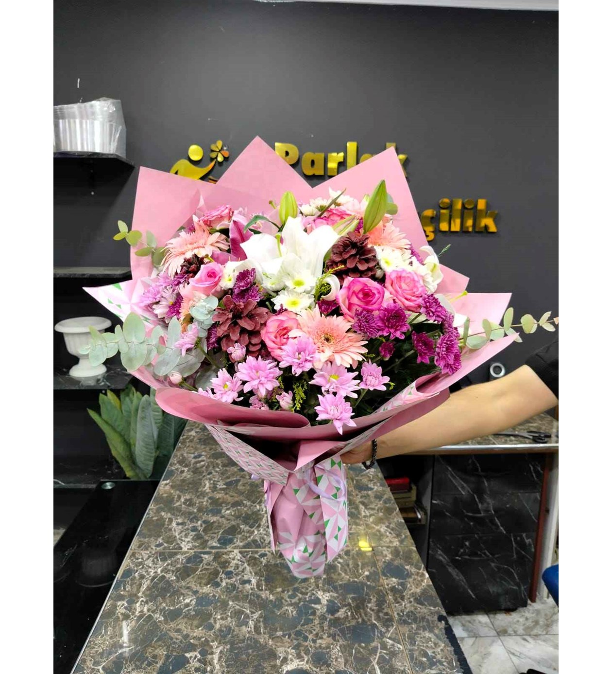 Bu zengin aranjman, mevsimin en taze çiçekleriyle yüksek estetik anlayışıyla oluşturulmuştur: