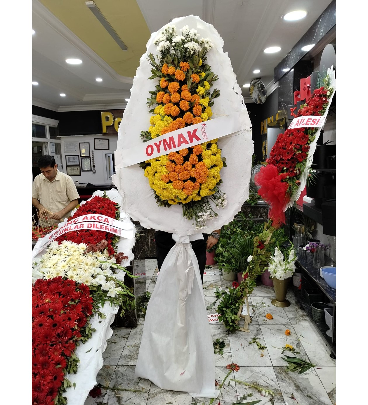 Çarpıcı Renk Kombinasyonu: Ana dolguda canlı pembe ve sarı gerberalar/krizantemler kullanılırken, aralarına serpiştirilmiş turkuaz mavi çiçekler (boyalı) tasarıma benzersiz ve dinamik bir hava katar.
